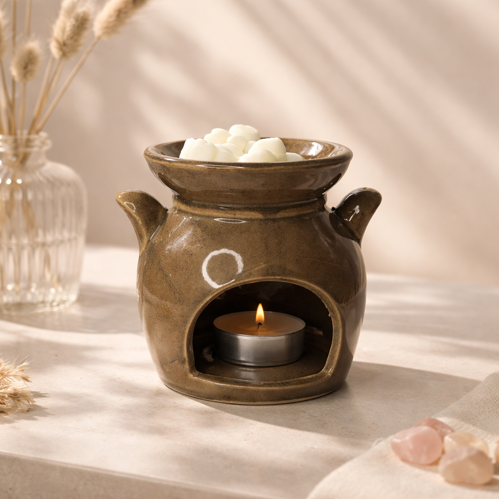 A felső tálkába helyezett illatviasz a mécses hőjének hatására lassan olvad, így hosszan tartó, egyenletes illatot biztosít. Az alsó, nyílás elegendő helyet ad a teamécsesnek, miközben a kerámia test finoman szórja a gyertya fényét, meghitt atmoszférát teremtve.