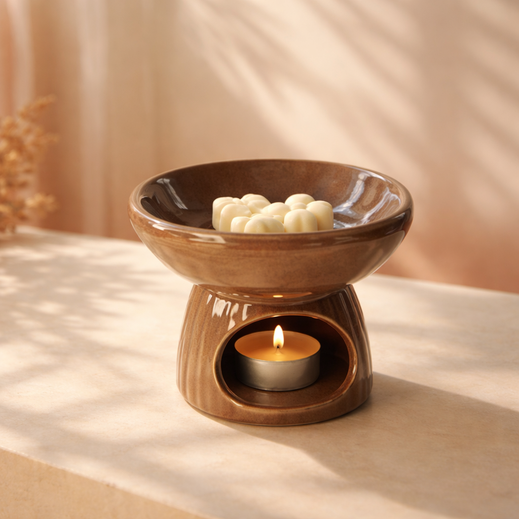 A felső tálkába helyezett illatviasz a mécses hőjének hatására lassan olvad, így hosszan tartó, egyenletes illatot biztosít. Az alsó, nyílás elegendő helyet ad a teamécsesnek, miközben a kerámia test finoman szórja a gyertya fényét, meghitt atmoszférát teremtve.