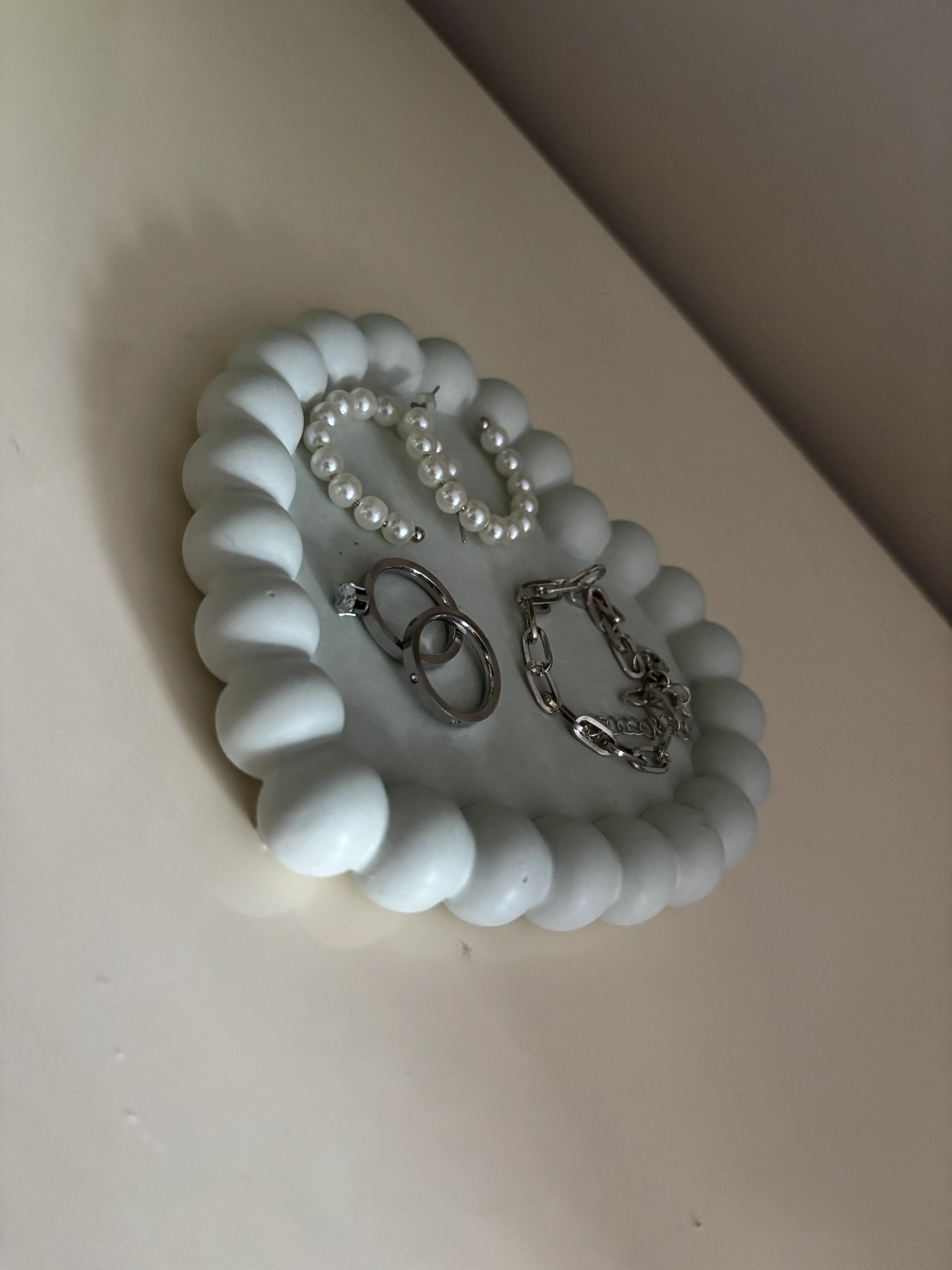 Ez az ékszertartó kiváló minőségű modellgipszből készül, letisztult és természetes megjelenése pedig minden darabot különlegessé tesz. Kézzel öntött termék, így nincs két teljesen egyforma példány.
