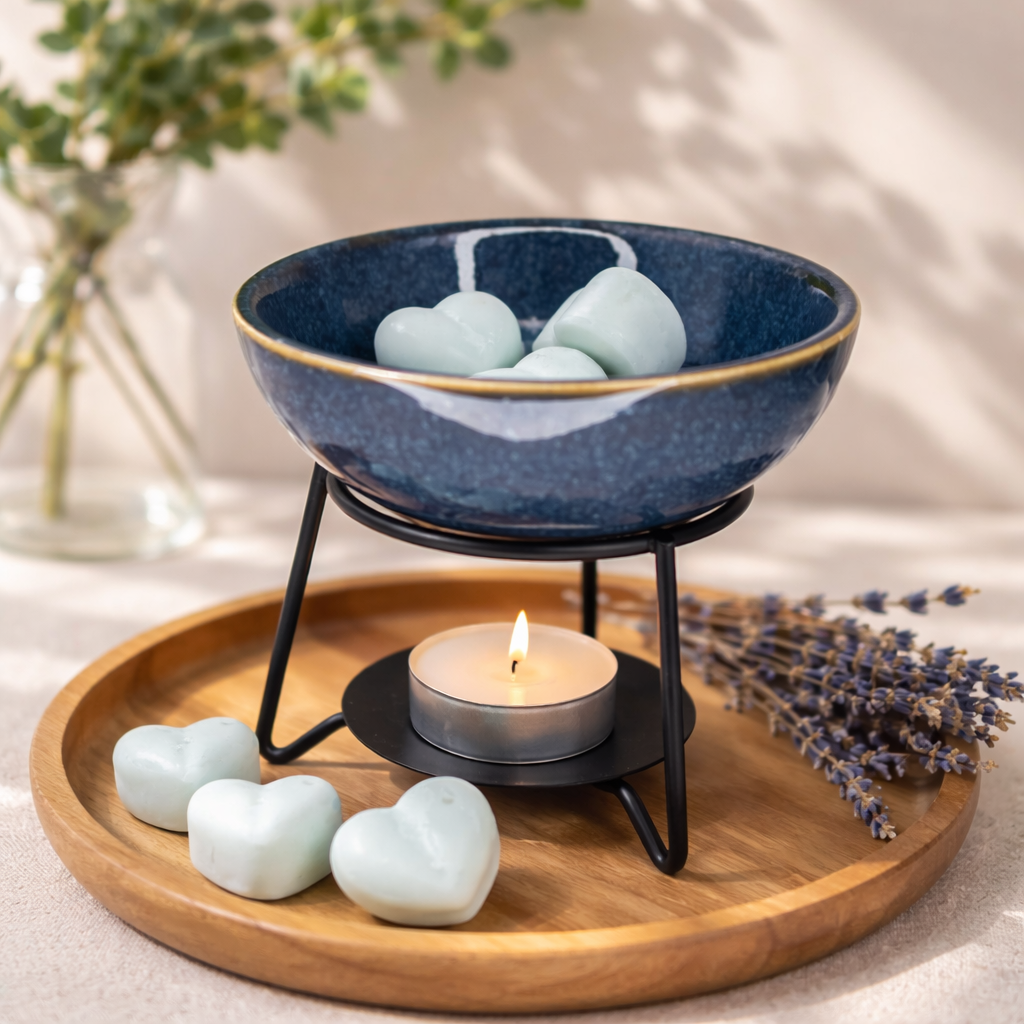 A felső tálkába helyezett illatviasz a mécses hőjének hatására lassan olvad, így hosszan tartó, egyenletes illatot biztosít. Az alsó, kis tálca elegendő helyet ad a teamécsesnek, miközben a kerámia test finoman szórja a gyertya fényét, meghitt atmoszférát teremtve.